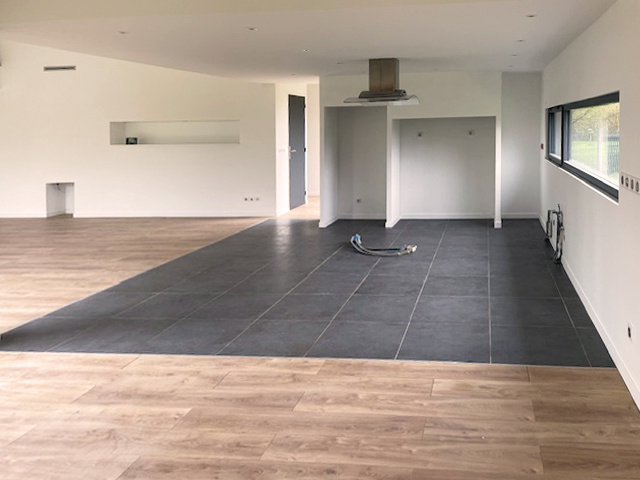La pièce de vie, de plus de 60 m², hyper lumineuse réunit salon, salle à manger et cuisine ouverte